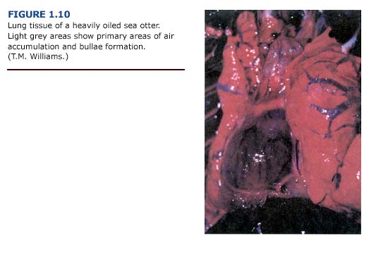 Pneumonia induced by the aspiration of oil, a characteristic respiratory lesion of petrochemical poisonings (Hatch, 1988), was not apparent in oiled sea otters during the EVOS.